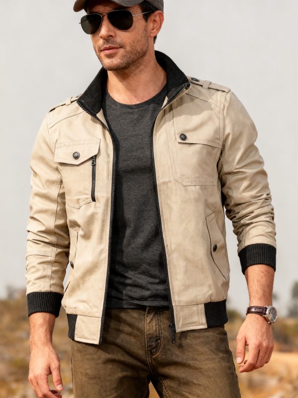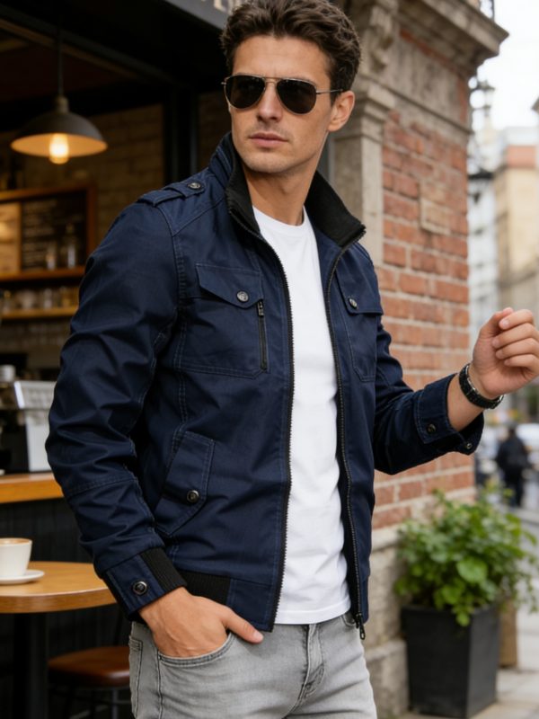 Men’S Casual Jacket with Pockets, Featuring Long Sleeves And a Stand Collar with Buttons