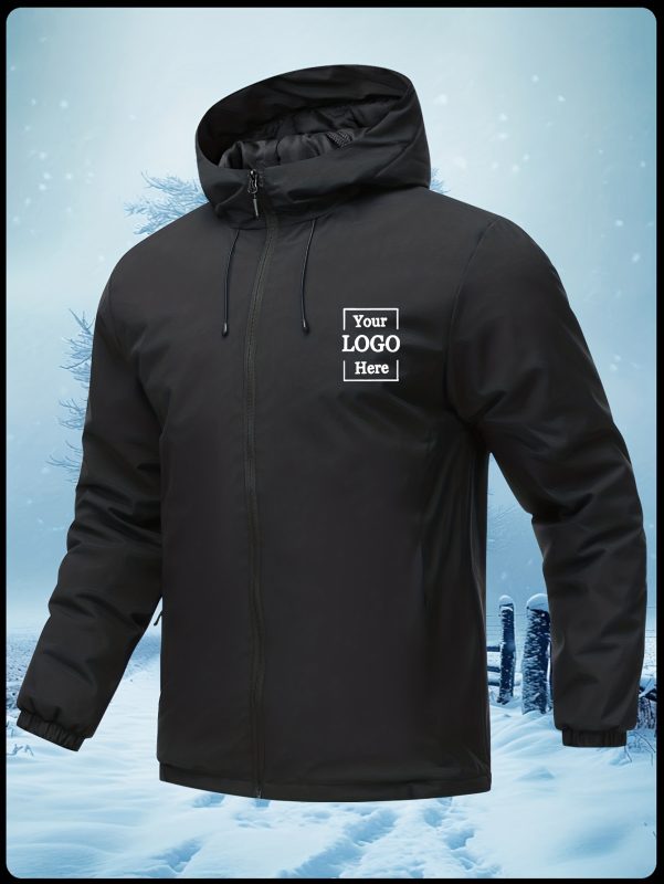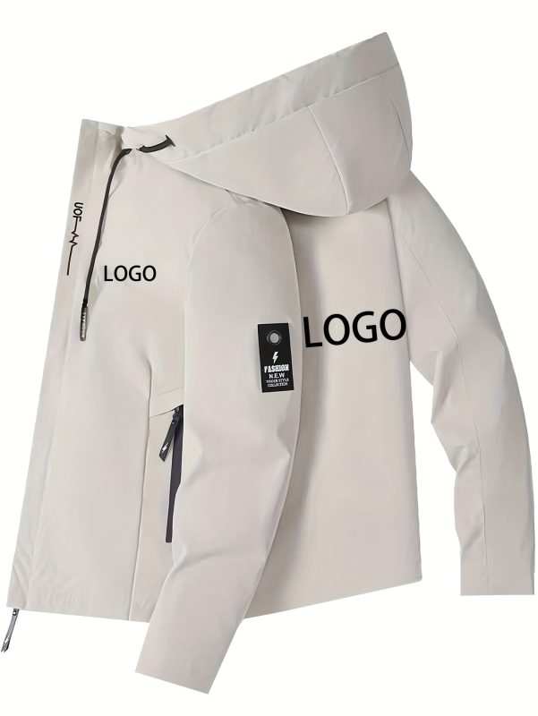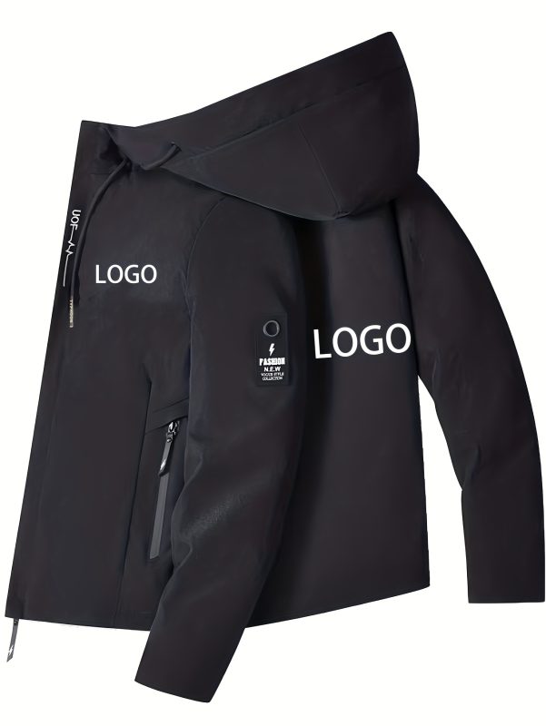 Custom Logo Jacket Men’s Custom Logo Jacket – Personalized Corporateu002FBrandu002FNameu002FText, Adjustable Hood with Drawstring, Front Zipper Closure, Side Pockets – Lightweight Non-Stretch Fabric for Business, Events, Casual Attire – Springu002FFall Outerwear Coat – Ideal for Prof