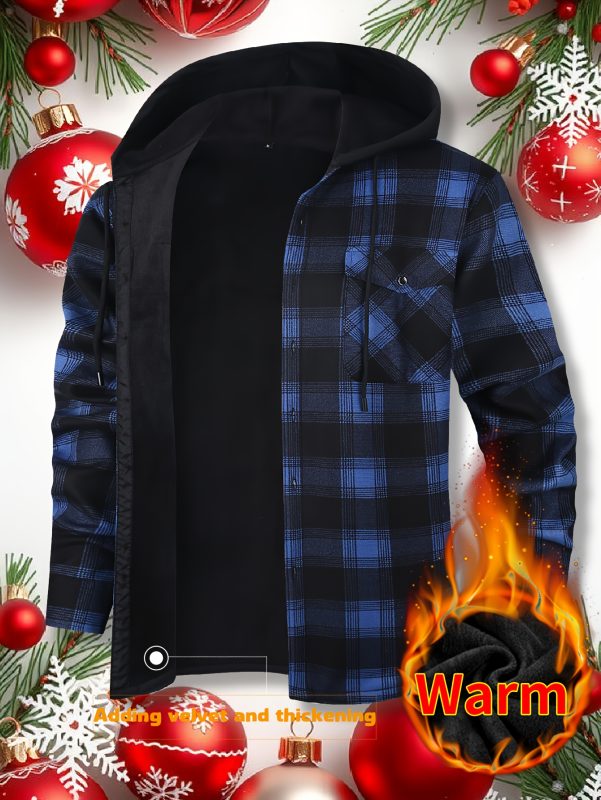 2026 New Men’s Hooded Jacket – Thermal Anti-Pilling Lining & Adjustable Hood, Windproof Winter Coat with Utility Pockets, All-Season Plaid Shirt Design In Blacku002F Blueu002F Grayu002F Whiteu002F Redu002F Beige – Casual & Formal Outerwear for Men – Storm-Ready