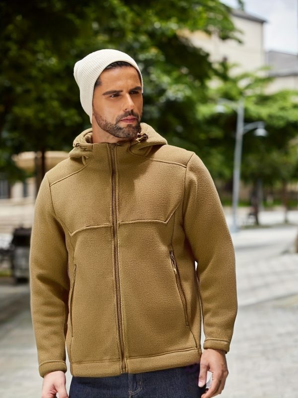 Autumn And Winter Men’S Sports Jacket with a Solid Color And Hood, Designed with Double-Sided Fleece for Warmth And a Soft Feel, Made from 100% Fleece