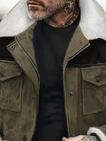 Home Men's Jackets &Coats Casual Loose-Fitting Single-Breasted Jacket for Young Men, Featuring Contrasting Colors, Suitable for Autumn And Winter in Europe And America