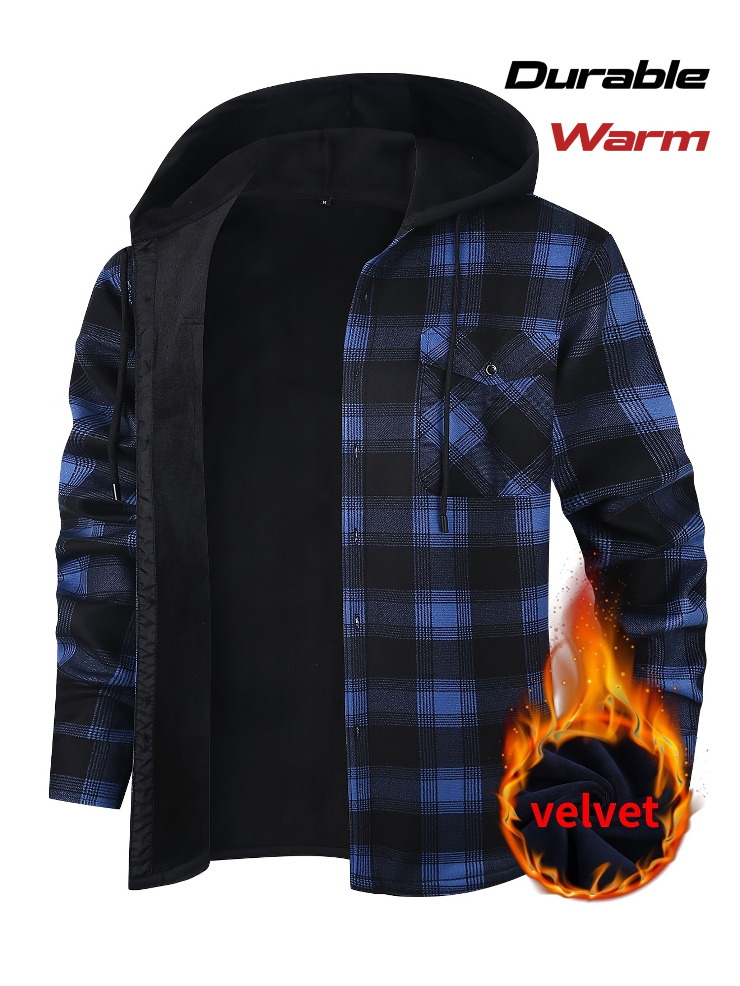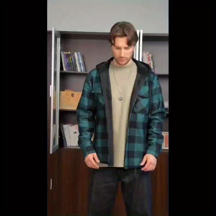 Home Men's Jackets &Coats ESEA Men’S Heavy-Duty Thermal Insulated Flannel Hooded Jacket – Blue Black Plaid Work Coat with Front Pockets, Long Sleeve Winter Outerwear for Logging, Construction & Cold Weather, Regular Fit Casual Workwear, Durable Warm Coat for Outdoor Jobs & Everyday Use, Long Sleeve Shirt for Men, Fleece Lined Shirt for Men, Logging Apparel, Men Jacket For Men, Men Jacket Winter, Men Winter Jacket, Men Coat, Men Dress Shirt Long Sleeve, Long Sleeve Dress Shirt For Men, Men Shirt Long Sleeve