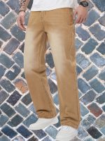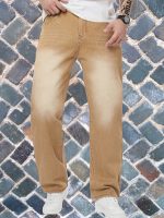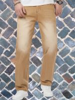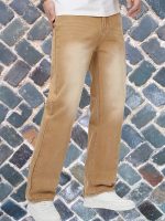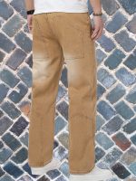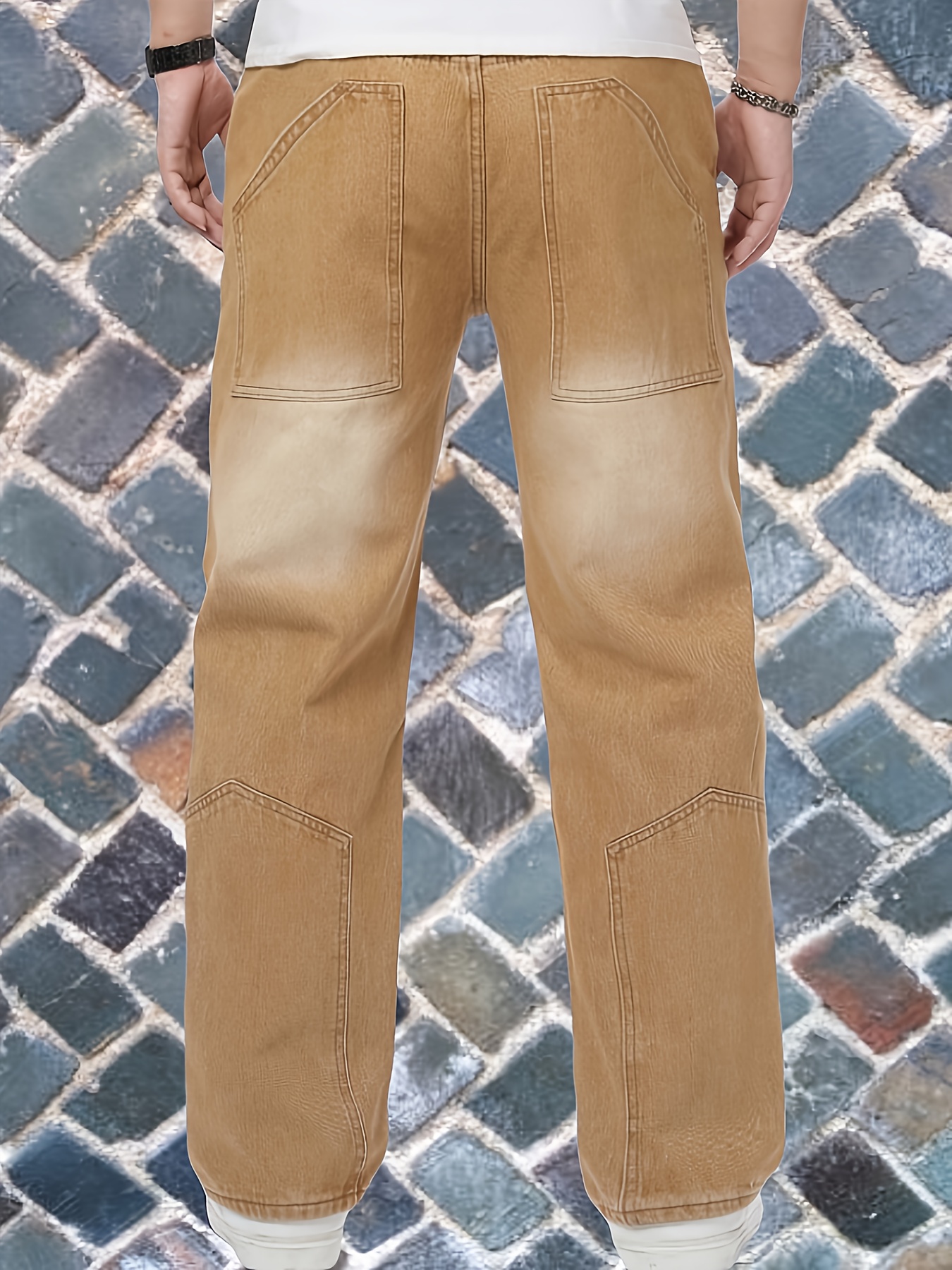 Men’s Heavy-Duty Stretch Denim Pants Wide-Leg Loose Fit Beltless Camel Color – Stone-Washed Tie-Dye Work Jeans, Machine Washable Casual Pants for – Wear (No Belt Included) Suitable for Work & Everyday Use