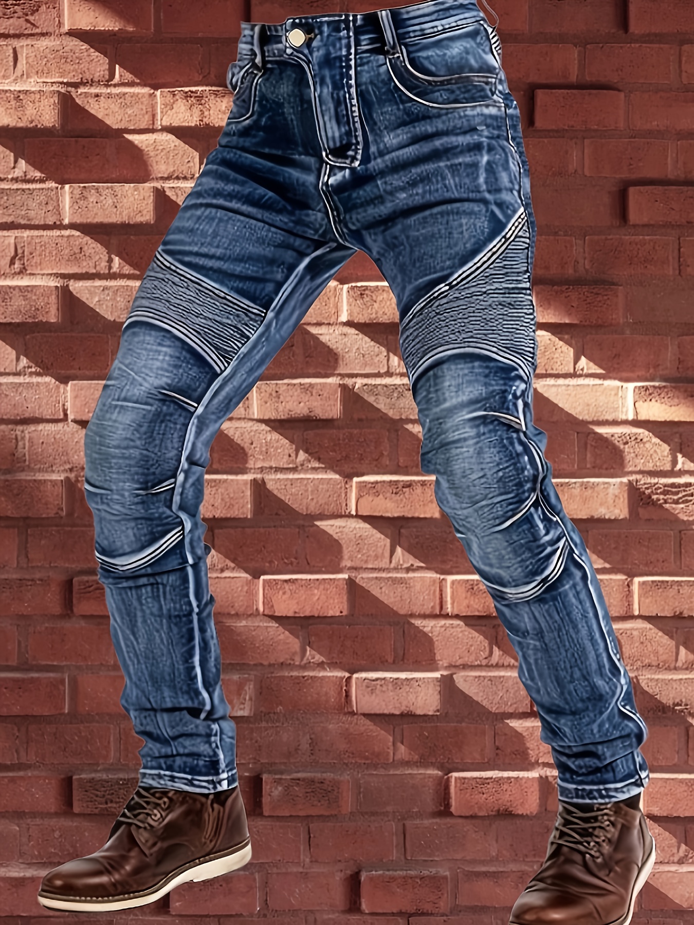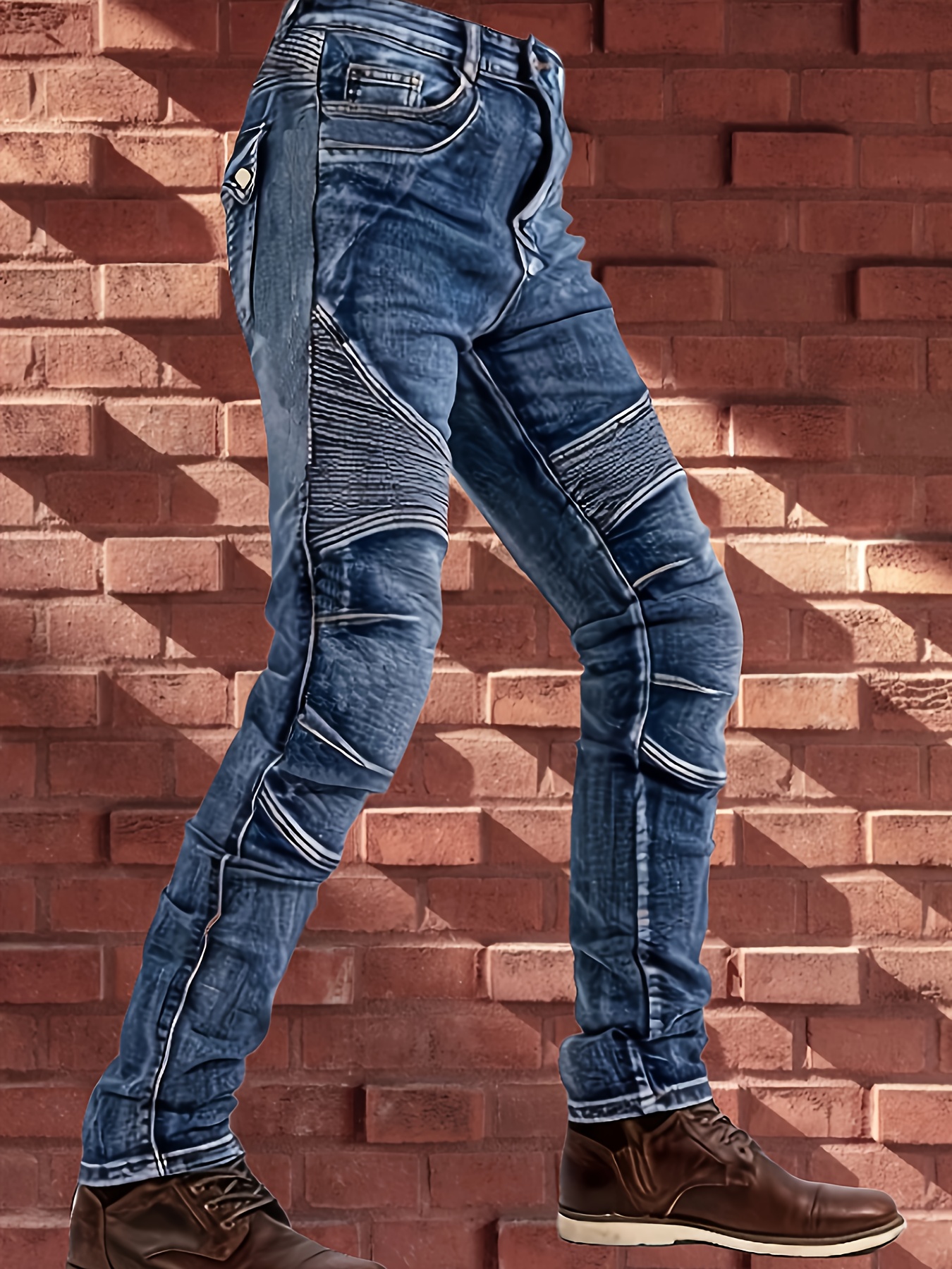 Home Men's Jeans Men’S Slim Fit Stretch Denim Pants | Wrinkled, Solid Color Patchwork, Four-Season Straight Leg Jeans, Casual Style, Medium Stretch Fabric