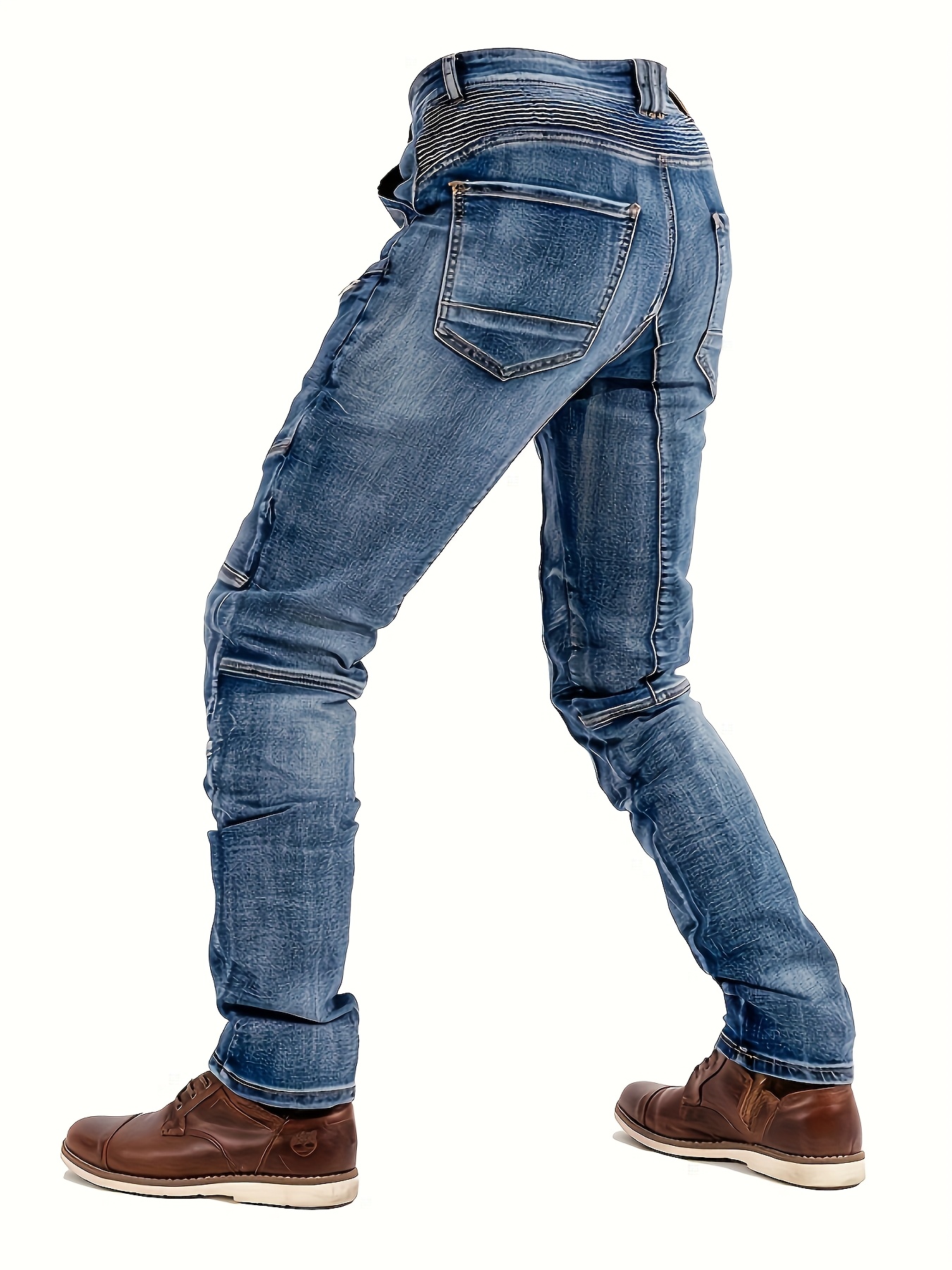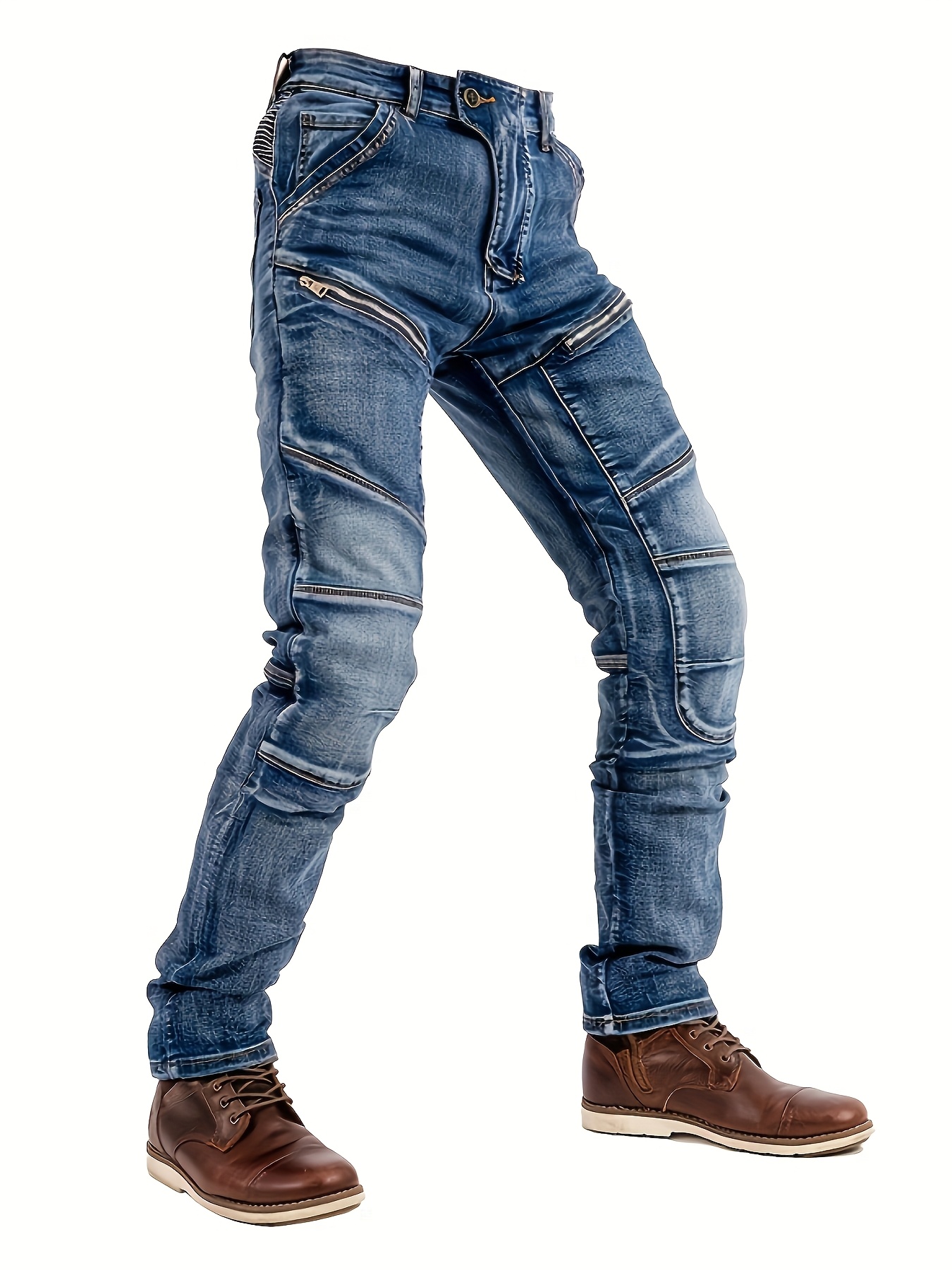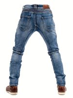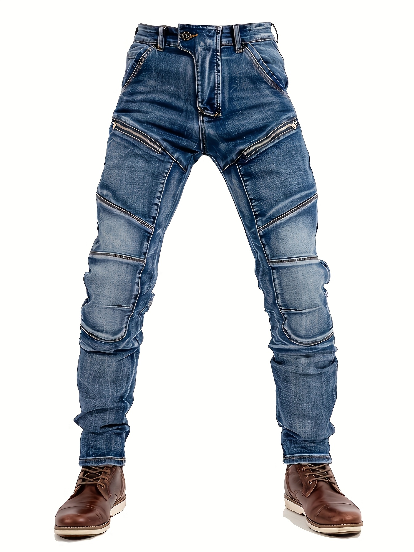 Men’s Stretch Slim-Fit Vintage Washed Denim Motorcycle Pants with Zippered Pockets – Mid-Stretch All-Season Comfort, Machine Washable Straight-Leg Design for Casual & Riding, Comfortable Yearround Wear | Durable Fabric