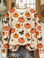 Plus Size – Plus Size Women’S Halloween Pullover Sweatshirt | Oversized Casual Round Neck Long Sleeve with Pumpkin Floral Butterfly Print, Machine Washable Fall Autumn Holiday Party Top
