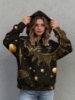Be the first to review “Plus Size, Waffle Hoodie Black Hoodie with Golden Cosmic Sun And Moon Print for Casual Wear 0XL-5XL” Cancel reply