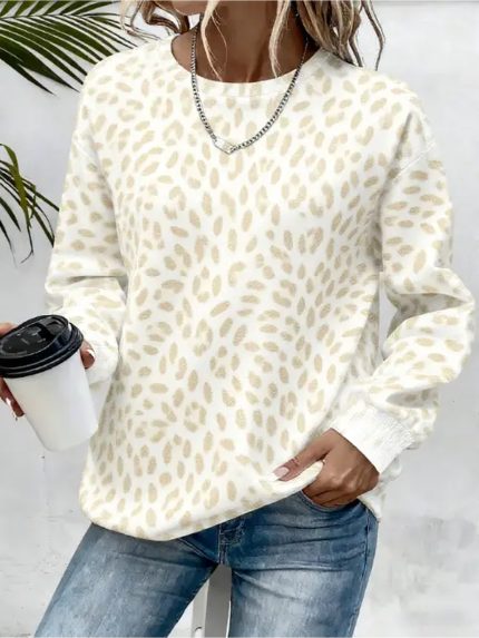 Plus Size, Women’ Oversized Loose Fit Leopard Print Sweater – Oversized & White Animal Crewneck Pullover, Size 0-5 (Half-Sizes), Machine Washable Polyester Winter Sweater for Fall Winter Casual & Semi-Formal Wear