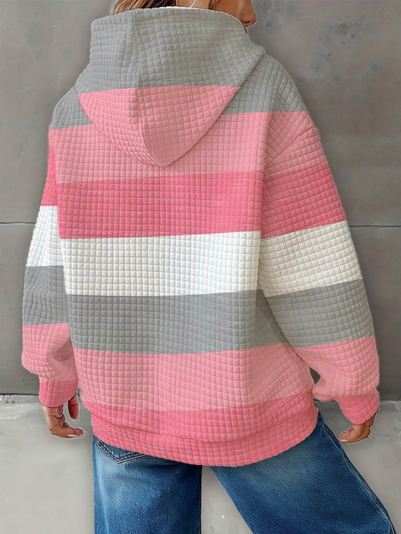 Plus Size – Plus Size – Colorful Waffle Hoodie with Vibrant Mandala Flower Print | Casual Wear and Festival Style, Oversized Fit, Long Sleeve, No, All-Season