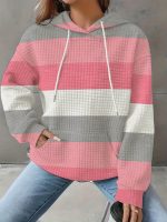 Plus Size, Women’s Christmas Graphic Hoodie – Cozy Pullover Sweatshirt for Holiday Parties – with Drawstring and Pockets, Waffle Textured Fabric, Christmas Sweatshirt, Casual Fallu002FWinter Wear, Playful Festive Design