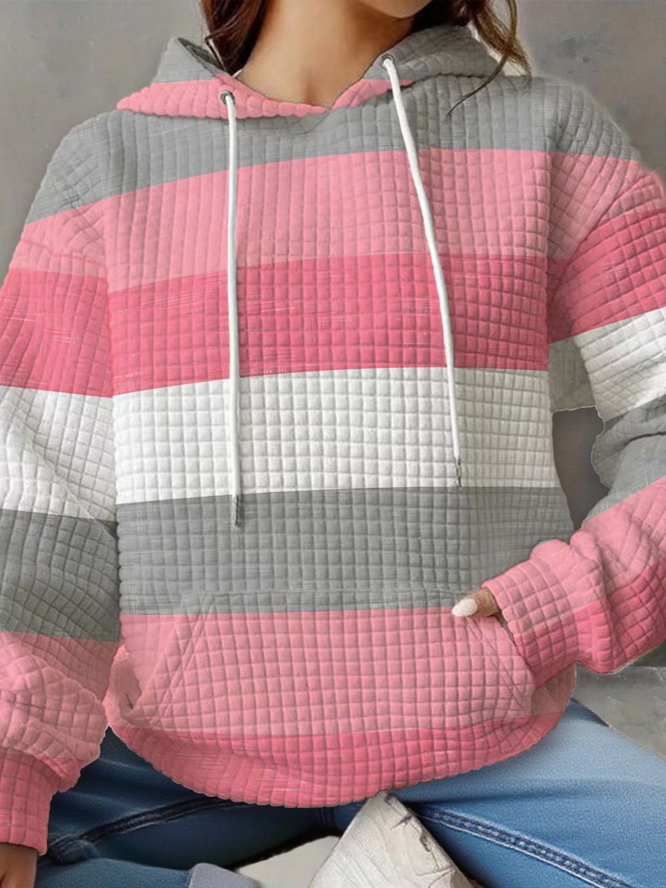 Plus Size – Plus Size – Colorful Waffle Hoodie with Vibrant Mandala Flower Print | Casual Wear and Festival Style, Oversized Fit, Long Sleeve, No, All-Season
