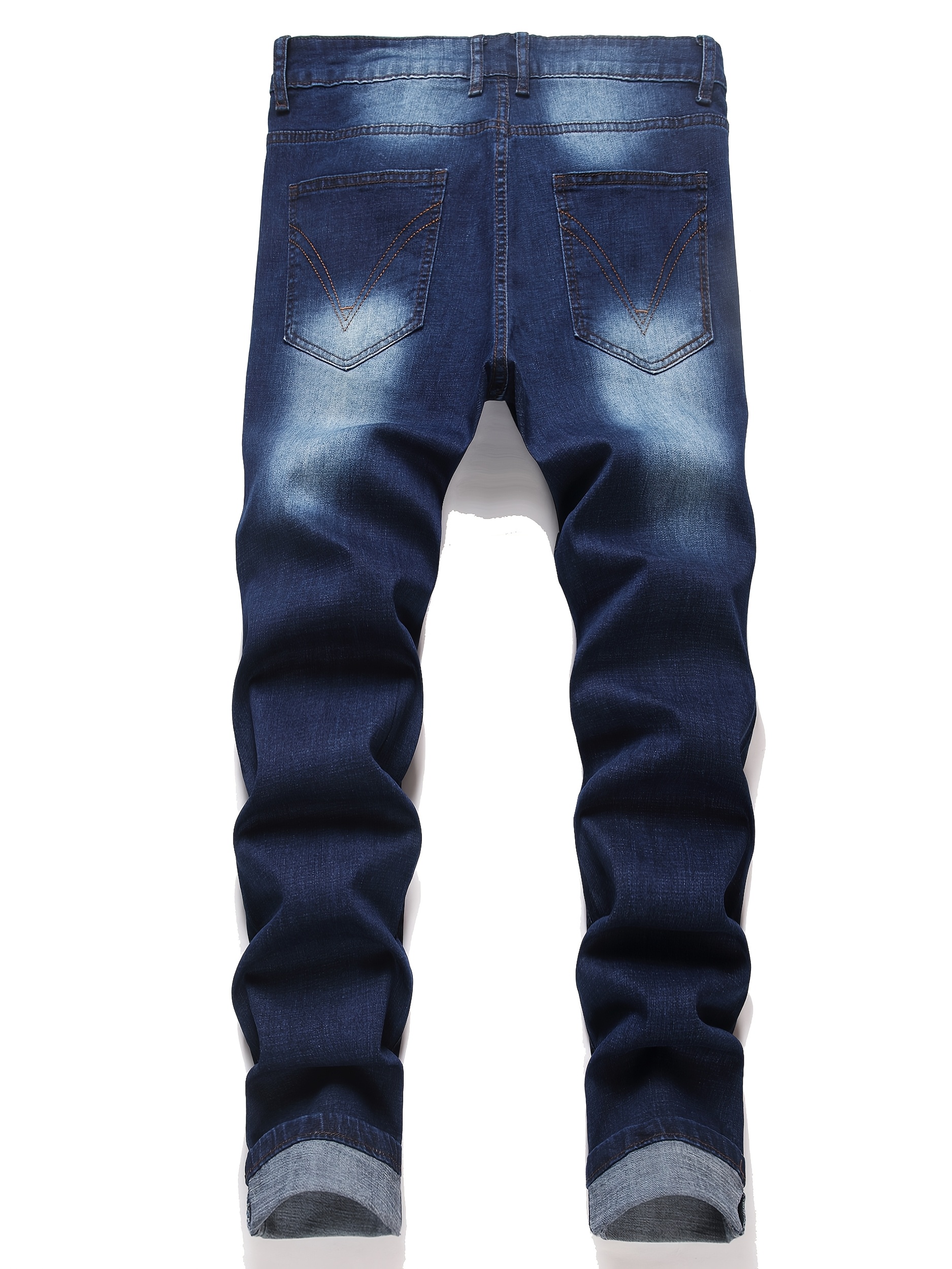 European And American Street Style Men’S Non-stretch Washed Jeans | Casual All-match Straight Leg Long Pants, Trendy Men’S Clothing, Color Block Pattern, Loose Fit, Perfect for All Seasons