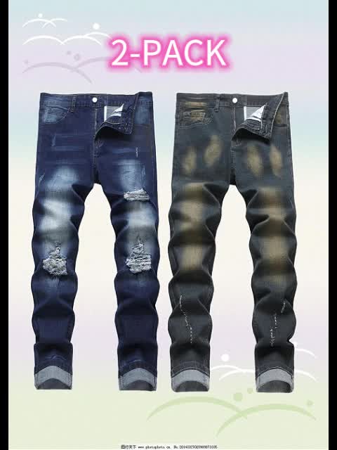 Home Men's Jeans Set of 2 Men’S Vintage Ripped Stretch Jeans, Stylish Casual Straight-Leg Long Pants.
