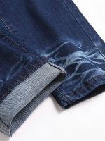1pc Men’S Street Trendy Retro Workwear Style Overalls | Retro Minimalist Distressed Slim Fit Small Leg Denim Pants with Adjustable Shoulder Strap Design, Suitable for All Seasons, Easy to Match – Blue