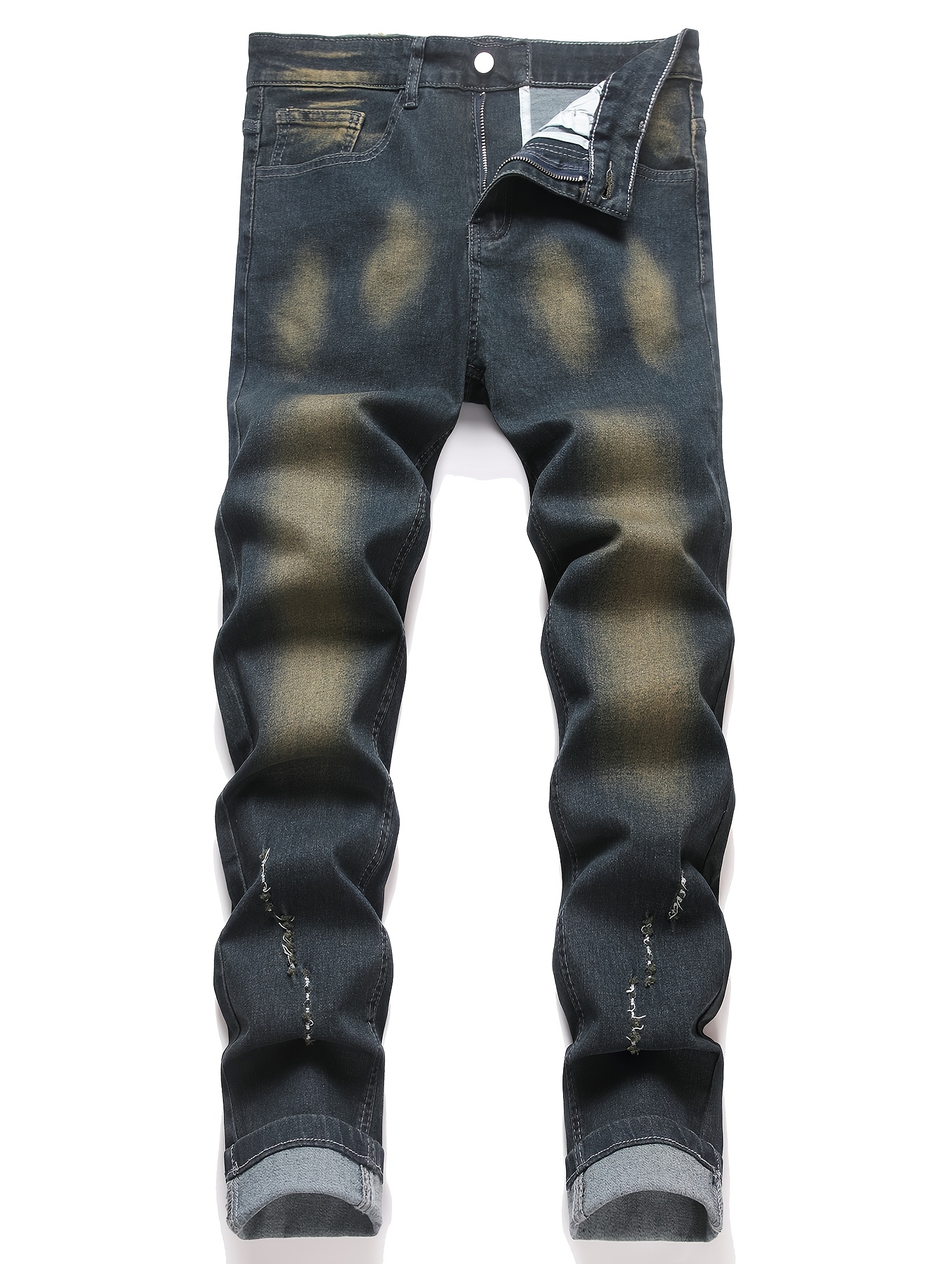 Loose Tie-Dye High-Waisted Stone Washed Jeans | Straight Leg Slimming Korean Style Men’S Jeans, Non-Stretch, Casual Style, All-season, Washed Detail