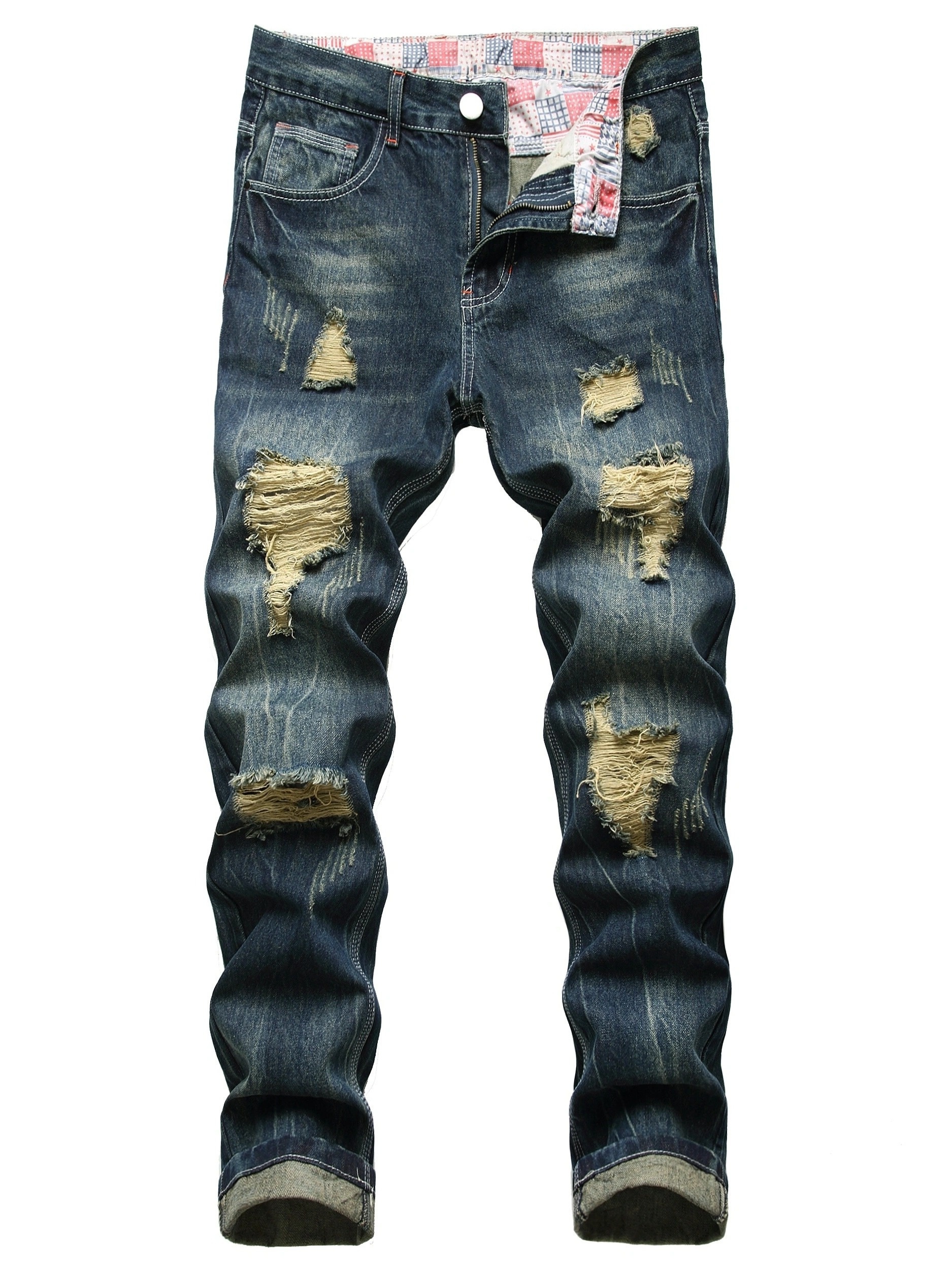 Slim Fit Long Pants for Men with a Vintage Ripped Design