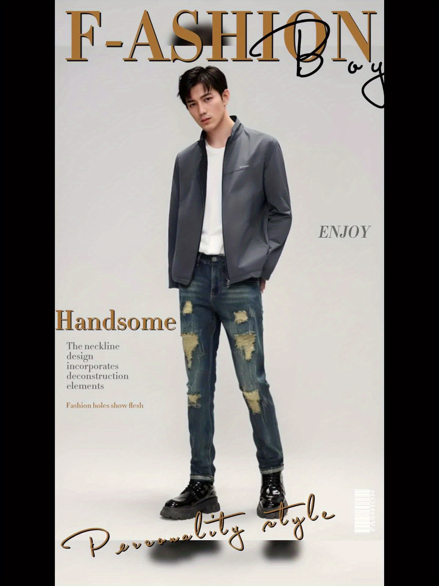 Loose Tie-Dye High-Waisted Stone Washed Jeans | Straight Leg Slimming Korean Style Men’S Jeans, Non-Stretch, Casual Style, All-season, Washed Detail