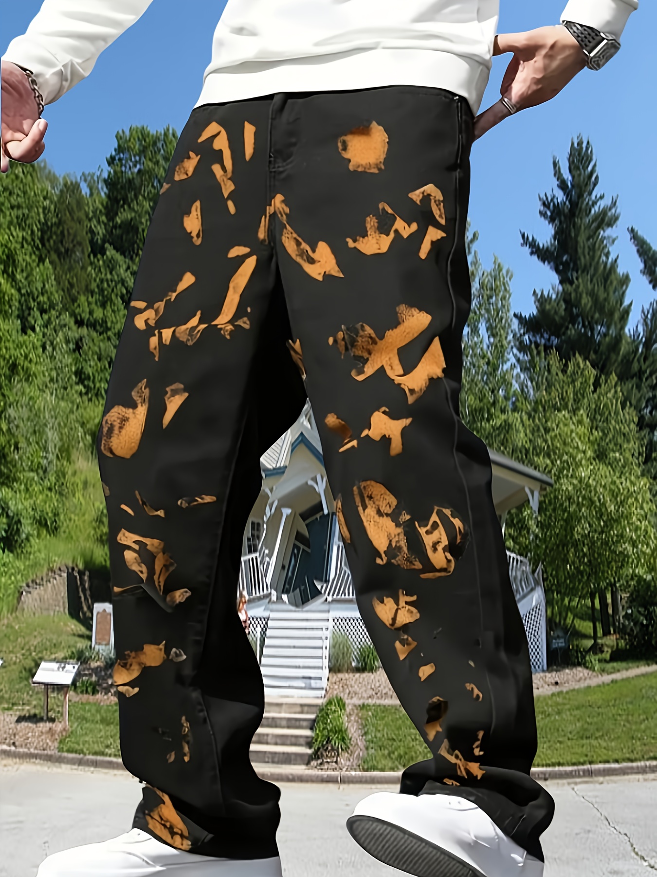 Loose Tie-Dye High-Waisted Stone Washed Jeans | Straight Leg Slimming Korean Style Men’S Jeans, Non-Stretch, Casual Style, All-season, Washed Detail