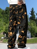 Y2K Retro Color-Blocked Skinny Pants for The Millennium, Featuring a High Street Tie-Dye in Orange And Black, Lightweight And Breathable for Spring And Summer, Easy to Match