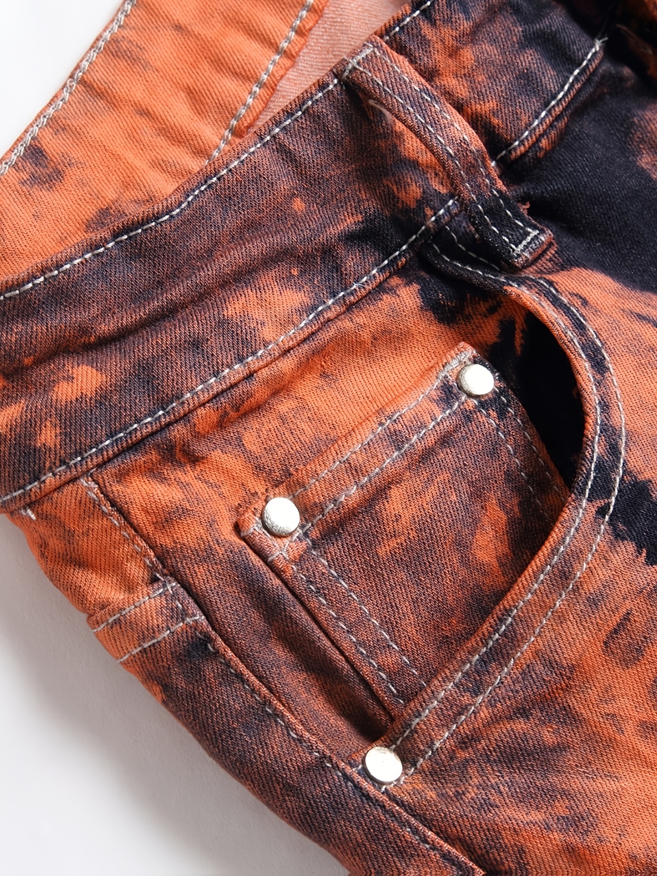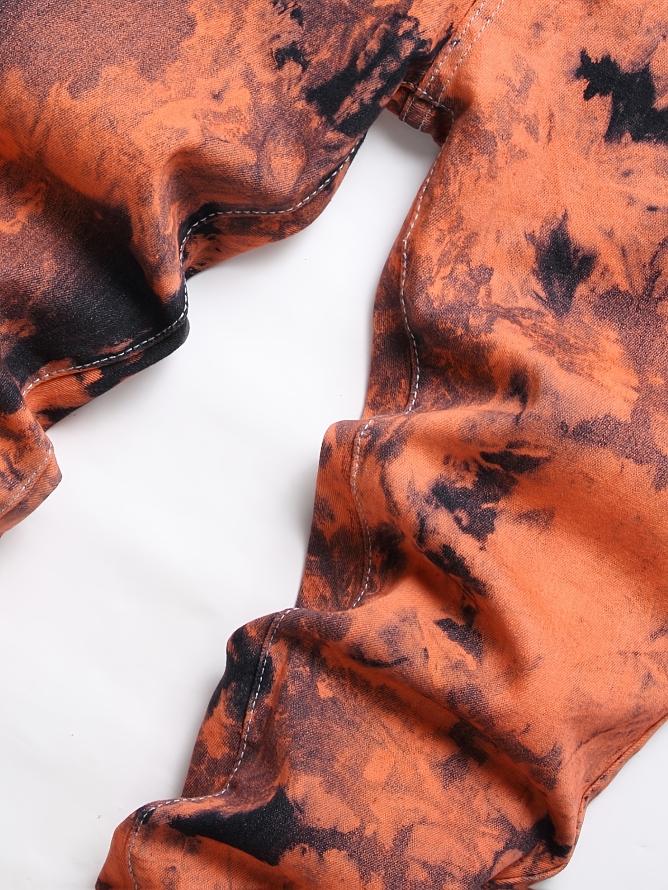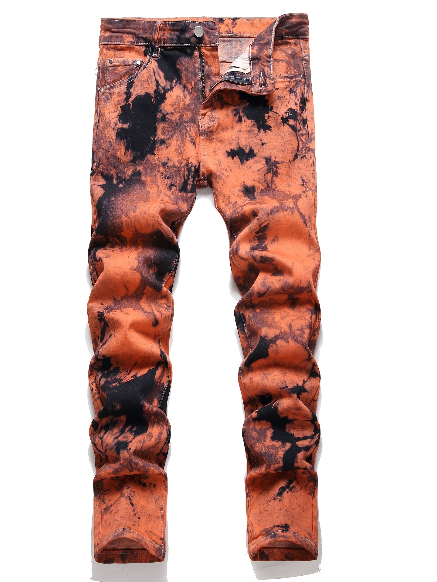 Y2K Retro Color-Blocked Skinny Pants for The Millennium, Featuring a High Street Tie-Dye in Orange And Black, Lightweight And Breathable for Spring And Summer, Easy to Match