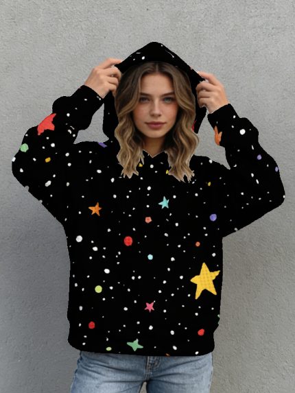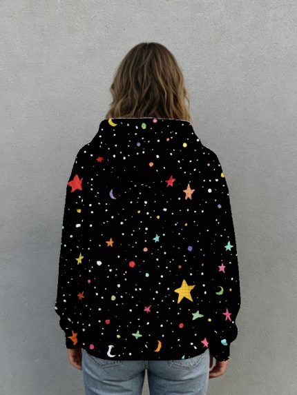 Plus Size – Plus Size – Waffle Hoodie | Colorful Stars Print, Black Galaxy Pattern, Casual Streetwear for Women and Men, Oversized Fit 0XL-5XL